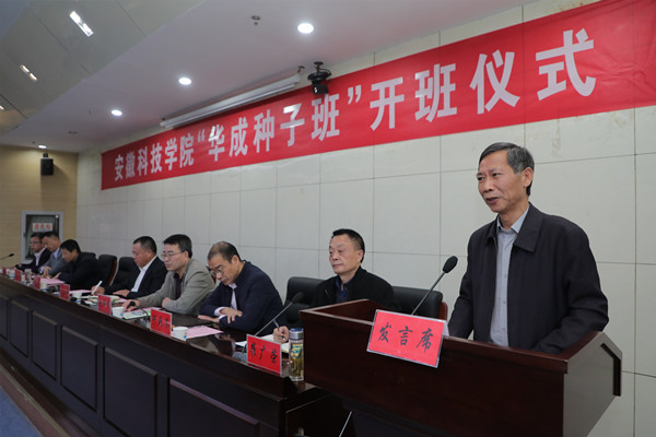 10月19日下午,农学院在凤阳校区新图书馆会议中心一楼报告厅举行“华成种子班”开班仪式。校党委副书记、院长李震应邀出席并发表讲话。校教务处处长、创新创业学院院长赵伟峰,校党委学工部部长、学生处处长黄立义,校招生与就业工作处副处长何晓冬,安徽华成种业股份有限公司董事长刘良柏,总经理王平信,董事会秘书、人力资源部部长王晶晶,党政办主任、宣传部部长韩欢,爱体育平台农学院党政领导、教师代表、辅导员代表、“华成种子班”行政班主任、专业班主任和全体学生参加。开班式由农学院党委副书记、院长崔广荣主持。