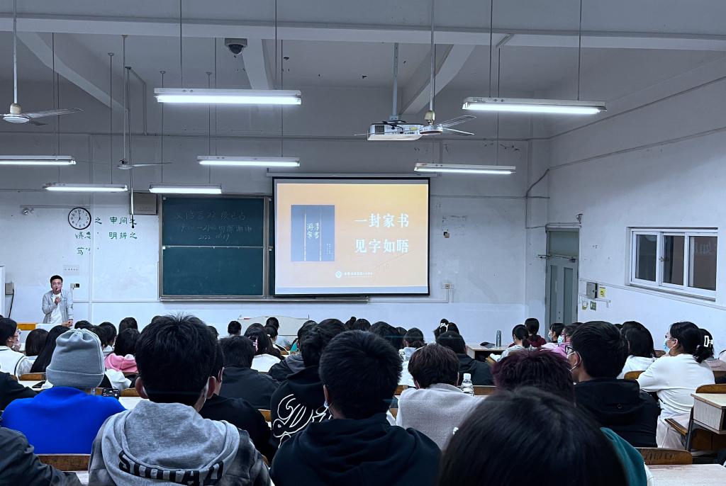 为传承百善孝为先的传统美德、弘扬中华优秀传统文化,加强感恩教育,11月8日晚,人文学院于求A101开展“一封家书,见字如晤”主题活动。活动由方明旺主持,汉语言文学2022级全体同学参加。