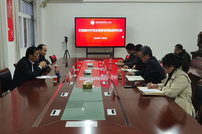 鲍春来首先肯定了我校法学专业建设和人才培养中取得的显著成果,并就下一步教师项目申报和调研、法学专业本科生实习、法治教育和培训等方面搭建校局合作平台,希望今后双方进一步加强教研合作、法律服务和法制宣传合作,打造滁州市校局合作的法律品牌。以此牵引带动滁州市司法行政工作不断提质增效,并预祝校局合作顺利推进和落地生根。