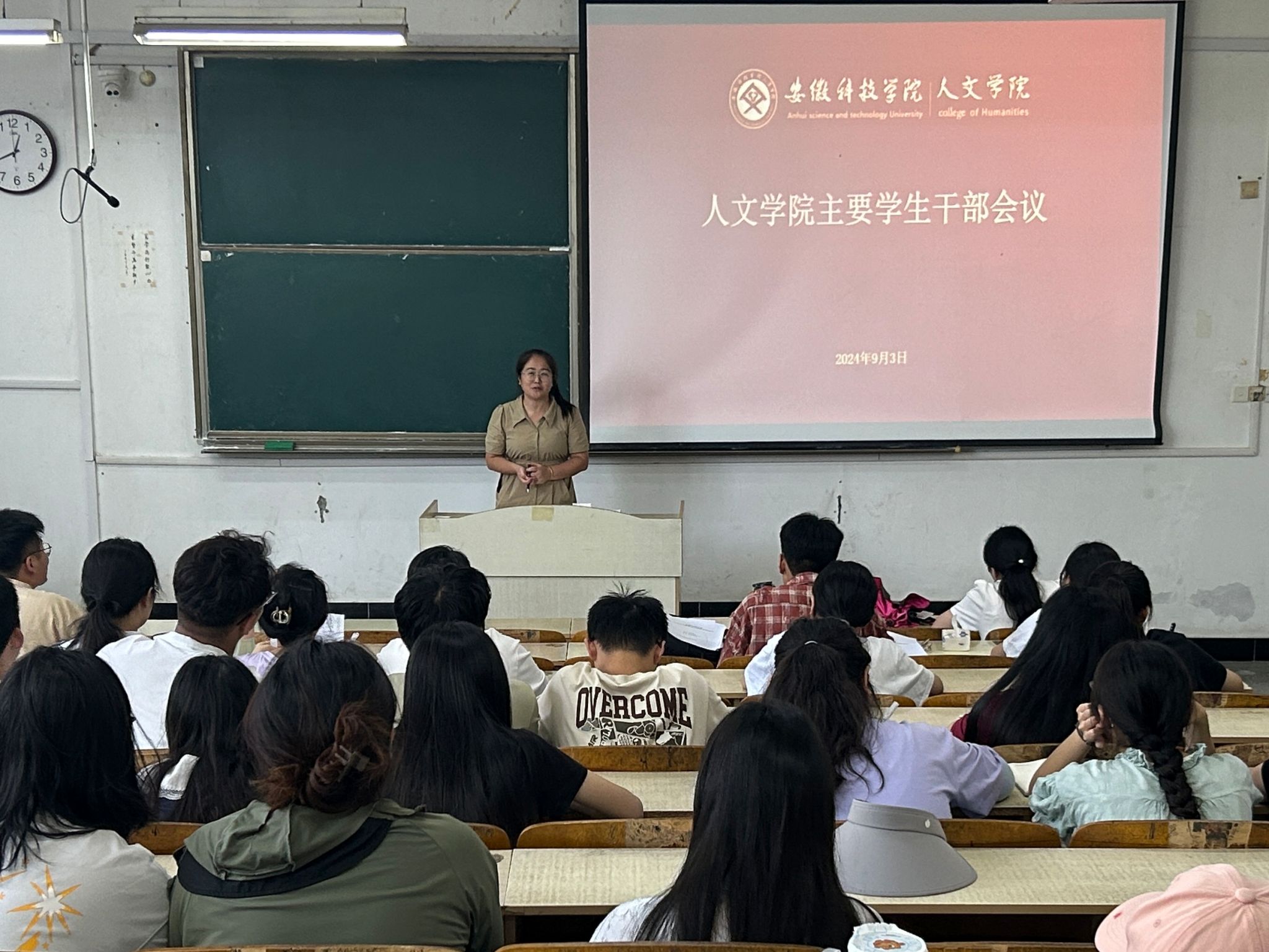为进一步加强学生干部队伍建设,增强服务意识,提高工作能力,统筹部署新学期学院学生工作,9月3日,人文学院在求知楼A203召开2024年秋季学期主要学生干部会议。学院党委副书记李沙娜和辅导员焦雪松、鲁冰冰、方明旺、徐琦琦,各班班长、团支书、学习委员参加。会议由分团委副书记焦雪松主持。