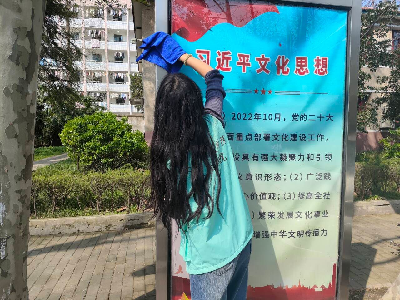 焕新宣传栏,映澈行人心——人文学院开展“春日送暖学雷锋”志愿活动