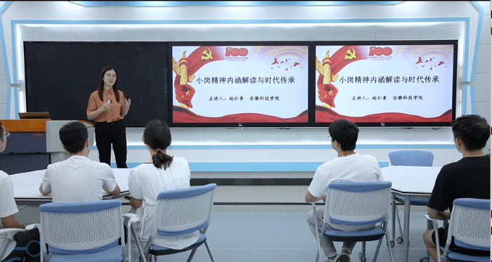 2021年以来,赵仁青老师在校内面向全体青年大学生,开展了多场次丰富多彩的以党史教育为重点的“四史”宣传宣讲示范活动。这些活动主要有:二级学院党员、入党积极分子参加的“党课来啦”;校团委的“青年党史学习微讲堂”、“青马工程”大学习;学生处的“学习讲坛”、易班“易学习”等。在2021年七一前夕,赵老师受安徽省教育厅邀请参加全省大中小学生“同上一堂‘党史’大课”宣讲,她和其他四位专家的共同精彩授课,在全省教育领域引发了强烈反响,线上线下累计观看人次超过900万。在城市,在乡村;在小学,在高中,在大学;在教室,在宿舍,在学校礼堂……全省大中小学的师生们一起学习党史,从中国共产党人的精神谱系中汲取智慧和力量。2022年,赵老师又积极参与了我校与凤阳县党的二十大精神系列宣讲活动,精彩授课获得了大家的一致好评。(特约通讯员:盛青广 摄影:李澜清 杨文俊 审核:姚文均 编辑:陈晋)