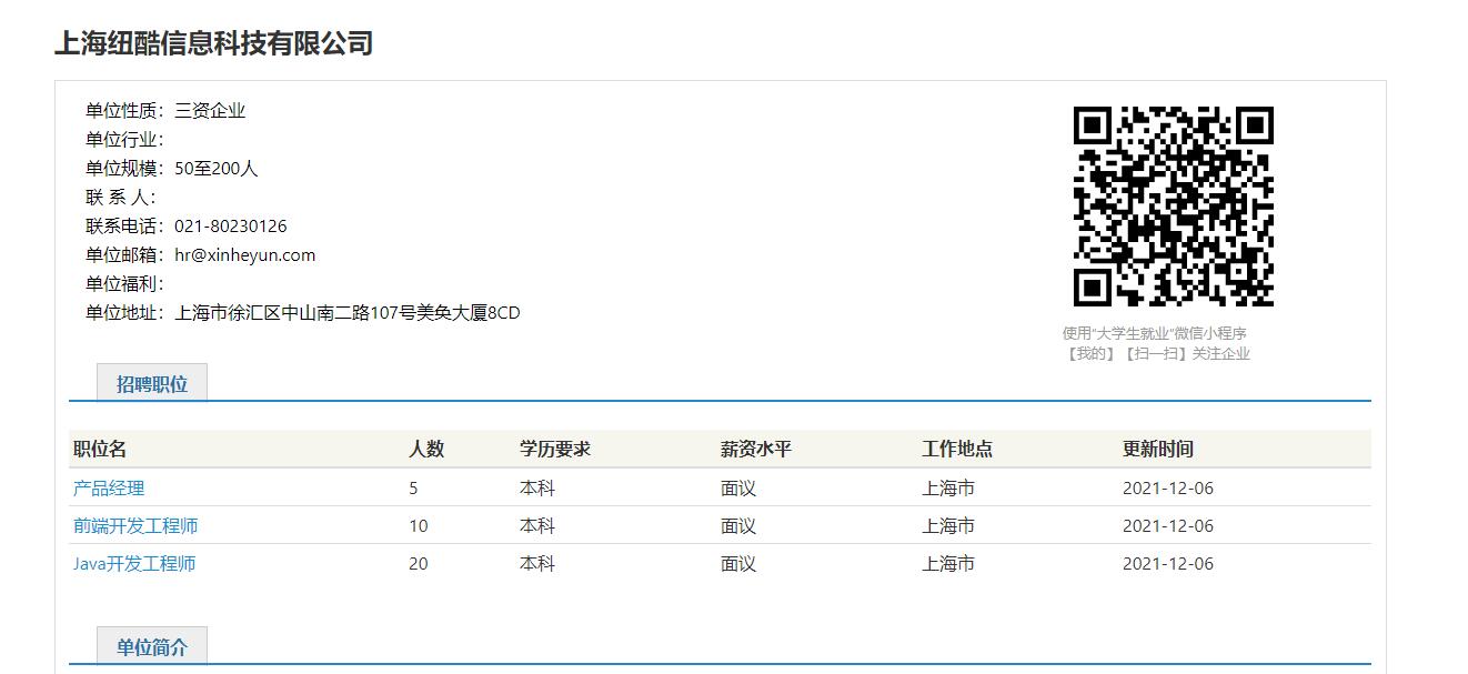 上海纽酷信息科技有限公司是一家面向制造业提供企业服务的互联网公司, 旗下核心产品——新核云是以SaaS模式,通过互联网和物联网技术,帮助离散型制造业实现工厂数字化的云ERP。通过互联网和物联网技术,新核云帮助客户打造更智能的工厂,在工业大数据和工业互联网领域完成了国内主要地区的布局。 公司目前刚刚完成数千万元B轮融资,投资方为YC中国、中软国际、北极光创投等知名机构。公司核心团队成员来自于德国奔驰在斯图加特的研究院。现在工业4.0/中国制造2025正是风口,公司也一直保持着200%的高速年增长,所以非常需要年轻有冲劲的小伙伴加入。