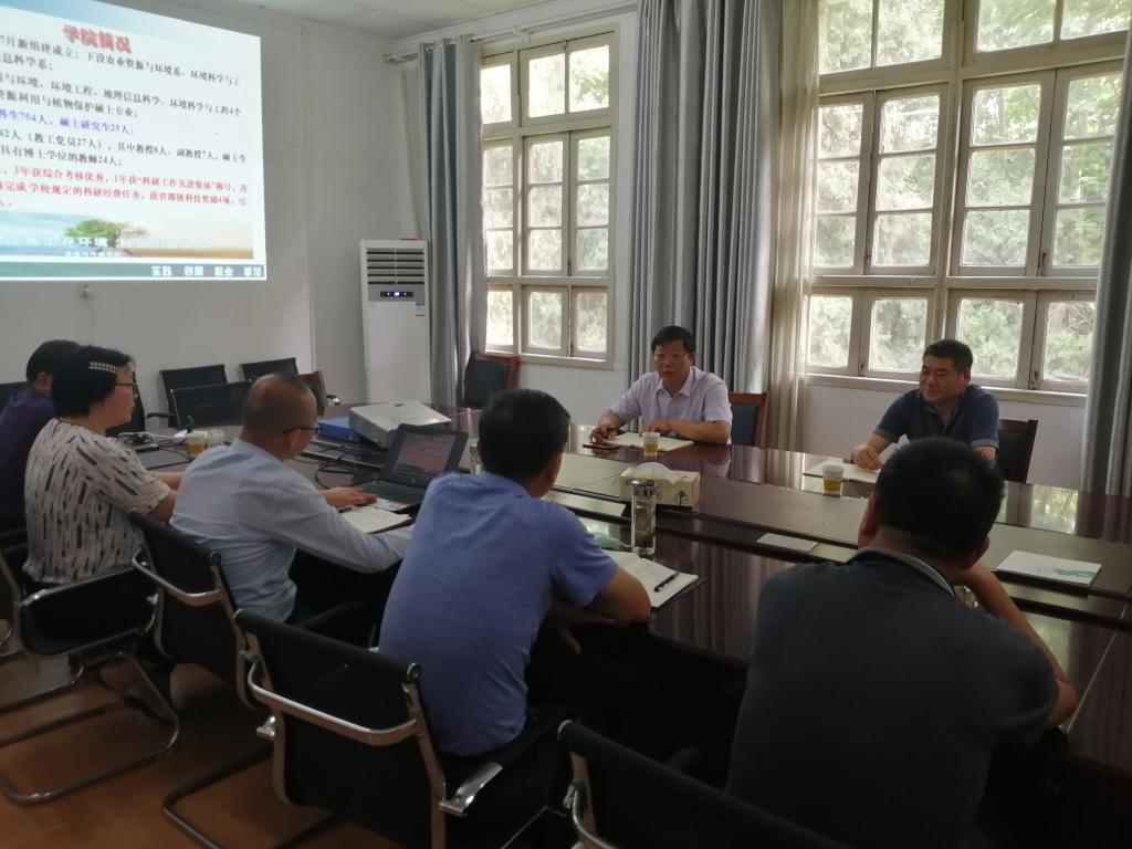 6月3日,校党委委员、副校长李升和在科研处副处长鲍方印的陪同下,调研指导资源与环境学院学科平台建设工作。党总支书记李孟良、学院院长肖新、副院长李孝良、副处级辅导员谢宜勤、院长助理谢越、各系(实验室)主任参与会议。