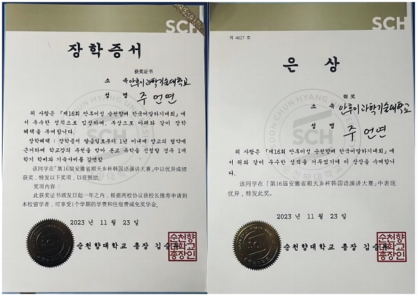 我校学子在安徽省第十六届顺天乡杯韩语演讲大赛中荣获佳绩