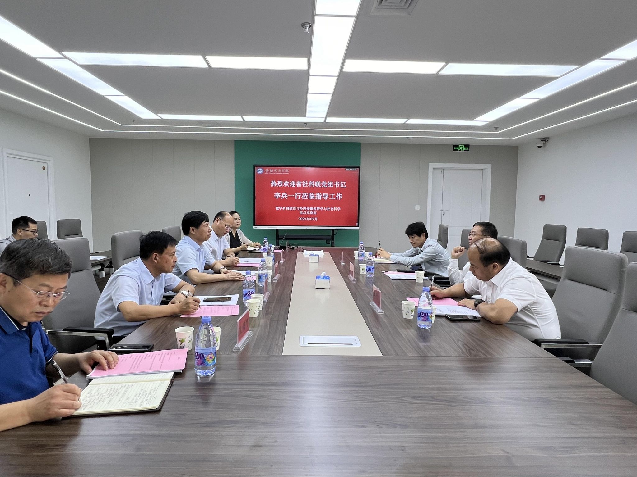 7月4日上午,安徽省社科联党组书记、常务副主席李兵,省社科联秘书长、一级调研员韩修良,省社科联办公室二级主任科员张淞硕,实地考察了数字乡村建设与治理安徽省哲学社会科学重点实验室并进行座谈交流。校党委书记、数字乡村建设与治理安徽省哲学社会科学重点实验室主任时伟、党委委员、副院长王孝义、科研处处长陈丰、管理学院院长陈传万出席座谈会,重点实验室相关人员参加会议。会议由时伟主持。