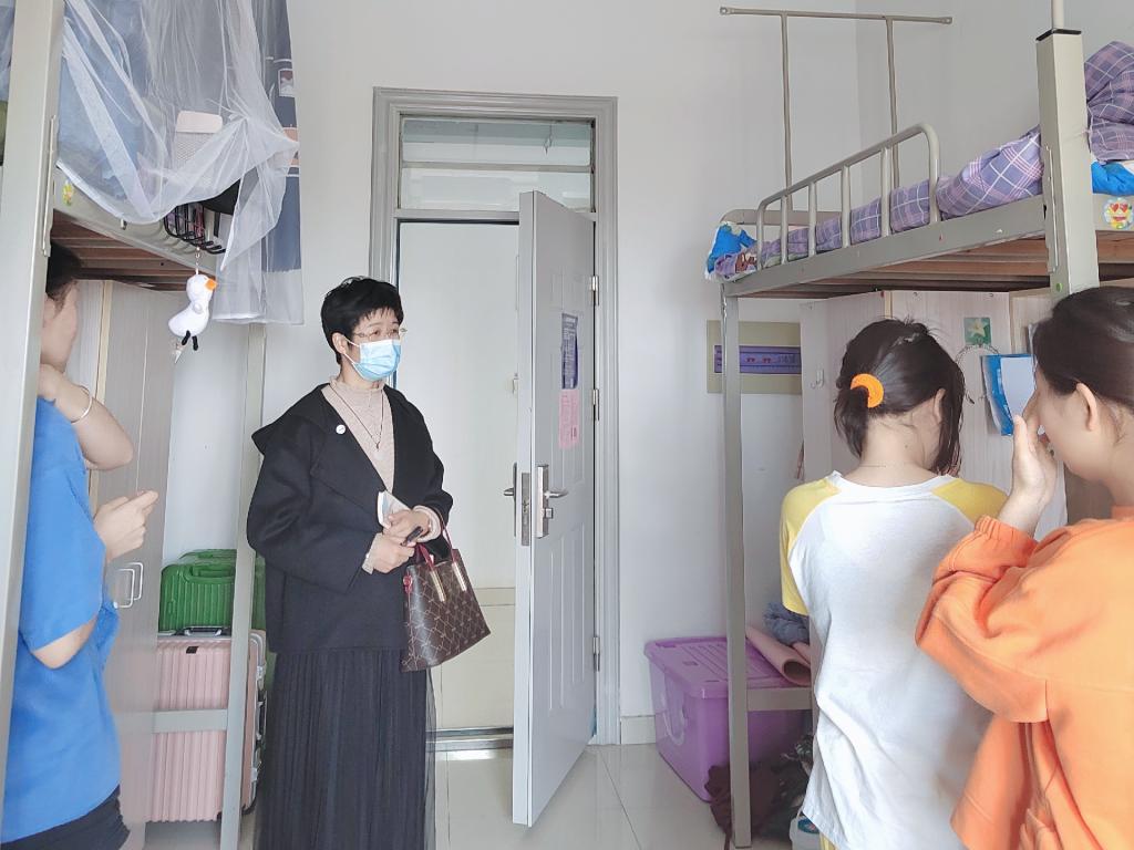 检查过程中,院领导老师与同学们进行了亲切交流,对同学们的身体状况、思想状况、学习情况和生活近况进行了细致了解。领导们在检查过程中,不断叮嘱同学们:一是疫情防控不可松懈,坚持每天测量体温,异常情况要第一时间报告;二是宿舍要多通风、勤洒扫,良好的宿舍环境是健康的前提;三是希望同学们能够严格遵守学校管控规定,合理安排好个人学习与生活。