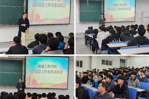 会上,张程简要介绍了学院在校往届运动会上所取得的优秀成绩,并对同学们代表学院积极参加本届运动会的主动性和积极性给予了表扬和肯定!为做好本届运动会的参赛工作,他强调,全体运动员要珍惜机会,做好赛前训练,调整身心状态,争创佳绩;全体辅导员、学生会及志愿者等工作人员要高度重视,做好充分准备,切实为保障运动员安全顺利参赛、取得优秀成绩做好精心服务;学生会要做好组织、检录、后勤服务等工作。最后他鼓励全体参赛同学要奋楫争先、赓续前行,再创机械学子运动会佳绩,为学院发展增光添彩!