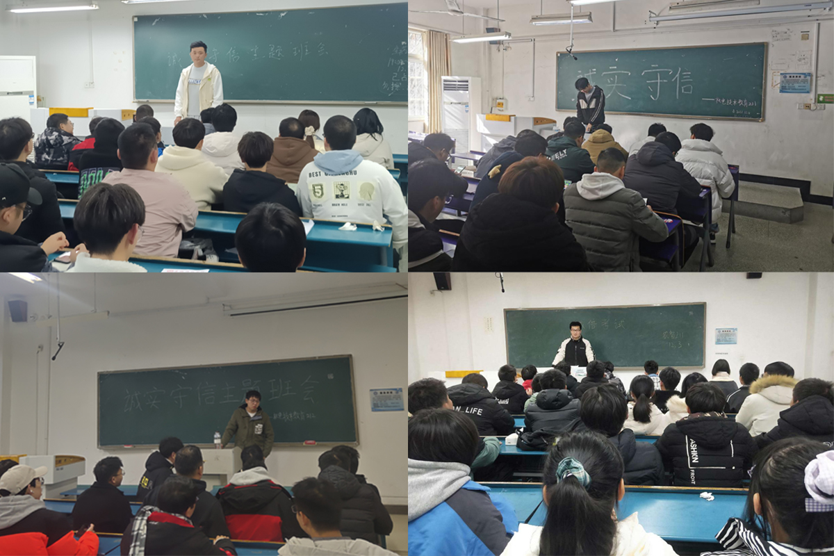 为持续推进新生入学教育系列活动,12月3日中午,机械工程学院辅导员邱杰在求知楼A101组织召开新生诚实守信教育大会,2021级新生各班班长和团支书参加会议。