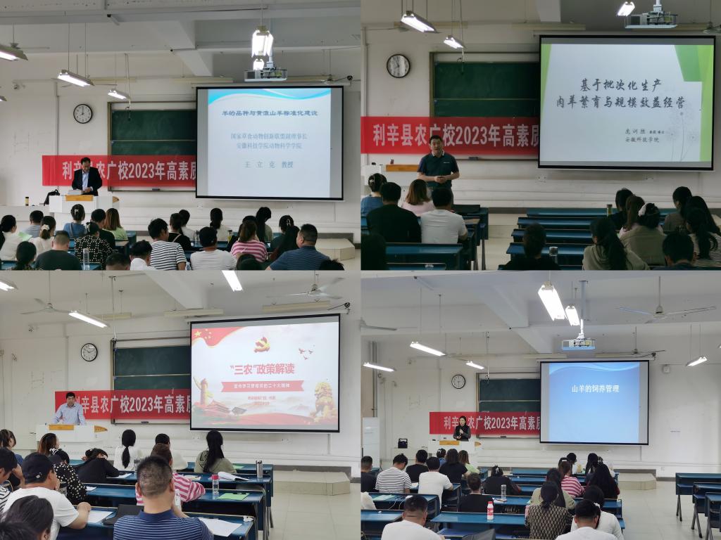 为了培养造就一批综合素质高、经营管理能力强、养殖技术过硬的黄淮山羊养殖专业家庭农场主,示范引领广大农民发展黄淮山羊养殖,发展地方优势农产品品牌,带动农民增收致富,促进农业扶贫产业转型升级、农村面貌的持续改变、农民素质不断提高,4月17日至19日,2023年利辛县高素质农民黄淮山羊养殖专业培训班在爱体育平台第一报告厅开班,继续教育学院党支部书记、院长杨维来,利辛县农广校副校长李明,利辛县农广校工作人员、村干部、养殖合作社成员共60余人参加了开班典礼。