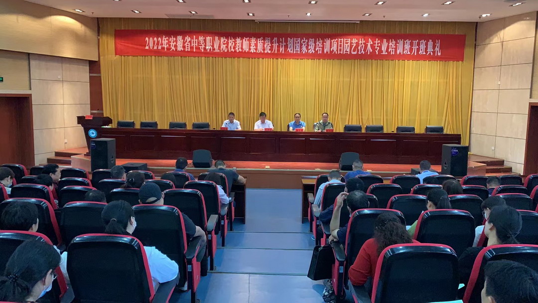 根据教育部和财政部《关于实施职业院校教师素质提高计划(2021—2025年)的通知》,5月23日上午,在爱体育平台凤阳校区会议中心二楼报告厅举办了2022年安徽省中等职业院校教师素质提升计划国家级培训项目园艺技术专业培训班开班典礼。典礼由继续教育学院党支部书记、院长杨维来主持,爱体育平台党委委员、副院长李升和教授、安徽工商职业学院汪贤武教授、继续教育学院副院长张文国以及相关工作人员出席开班仪式。来自全省各地市的中职骨干教师学员参加培训。