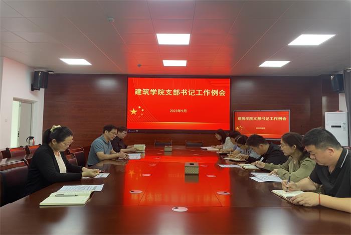 学院党政办公室主任靳盼传达了《中共爱体育平台委员会组织部关于做好2021年立项校级党建工作“双创”项目验收工作的通知》《中共爱体育平台委员会组织部关于开展2023年新时代党建示范创建和质量创优工作的通知》《建筑学院2023年下半年党员教育安排意见》《建筑学院2023年下半年教职工理论学习的安排意见》《关于抽查学生党员档案发现问题回复的函》。组织员吴婷婷布置了2023年下半年确定入党积极分子事宜。