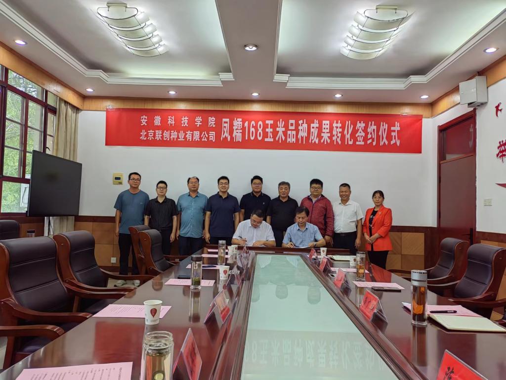 9月22日上午,农学院玉米科技创新团队选育的玉米新品种“凤糯168”转化成功签约。北京联创种业有限公司营销总监王青才,我校科研处处长陈丰、农学院院长崔广荣、副院长李文阳、玉米科技创新团队负责人余海兵与团队成员参加签字仪式。
