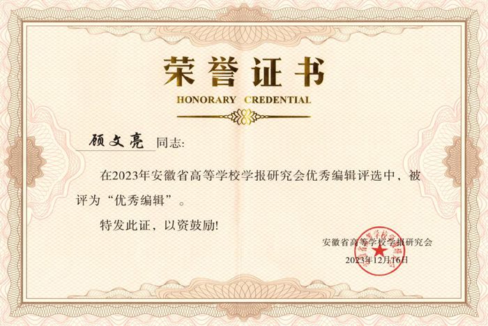 本次年会分为常务理事会议、研究会功能型党支部政治理论学习、研究会工作报告、专家学术讲座、首届编辑技能大赛和青年编辑论坛等多个议程。我校学报编辑部顾文亮一举斩获编辑技能大赛“二等奖”及2023年度“优秀编辑”。这两个奖项不仅体现了顾文亮个人的专业能力和学术造诣,也展示了我校学报编辑部在学术期刊领域的优势地位。