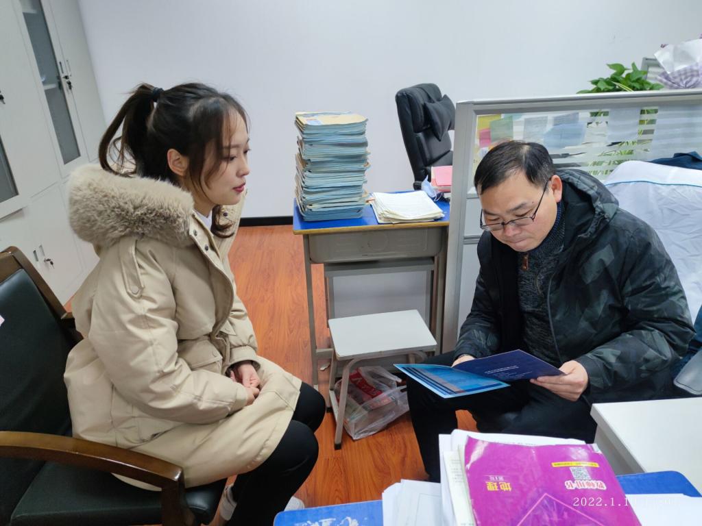 到达校园后汤佳慧团队首先拜访了班主任金诚岩老师,并与老师进行了亲密交谈。汤佳慧和老师共同回忆了高中的生活,交谈氛围逐渐轻松起来,她向老师汇报了这几年在大学的变化与成长的心得,为老师展示了在大学的活动主持照片等,和老师讨论了个人未来设想与规划,以及表达了当年老师的教育之恩并向老师详细介绍了爱体育平台的相关情况如学校条件、校园风景、师资水平、考研录取率等。金诚岩老师表示日后有机会一定要去爱体育平台参观学习。随后汤佳慧团队拜访了地理老师钱民民,钱老师目前是马鞍山市二十二中高三14班的班主任,听说团队此行的目的之后非常热情地安排了团队与高三学子进行交流。