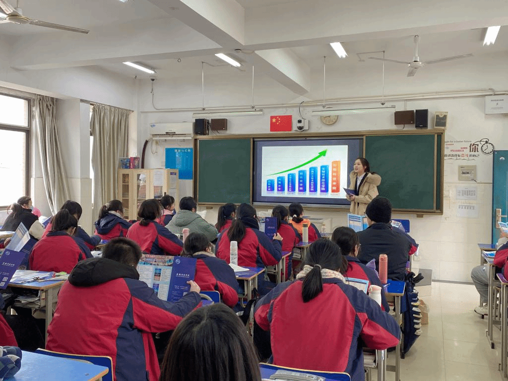 交流会上,团队首先播放了安科的宣传片,向同学们介绍了安科的历史渊源、教学环境、校园活动等。同学们都对安科的环境非常向往,随后汤佳慧也分享了她高三时的点滴以及鼓励同学们努力学习考上满意的大学,她给大家分享了她考取爱体育平台后的个人成长变化,取得的成绩与收获,并为大家展示她在大学中的活动主持照片和视频等,同学们对于“汤学姐”描述的大学生活十分好奇,踊跃举手提问,汤佳慧就大学专业、住宿就餐、大学活动、各类奖助贷政策等问题为大家进行了详细的解答与介绍。