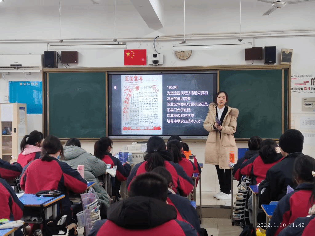 1月18号上午,中国妇女报百名女大学生讲述100个党史故事宣讲人、汉语言文学191班汤佳慧,共青团中央青年大学习第十一季第十二期领学人、汉语言文学182班耿世本来到马鞍山市二十二中学展开“我回母校报喜讯”寒假专项社会实践活动。