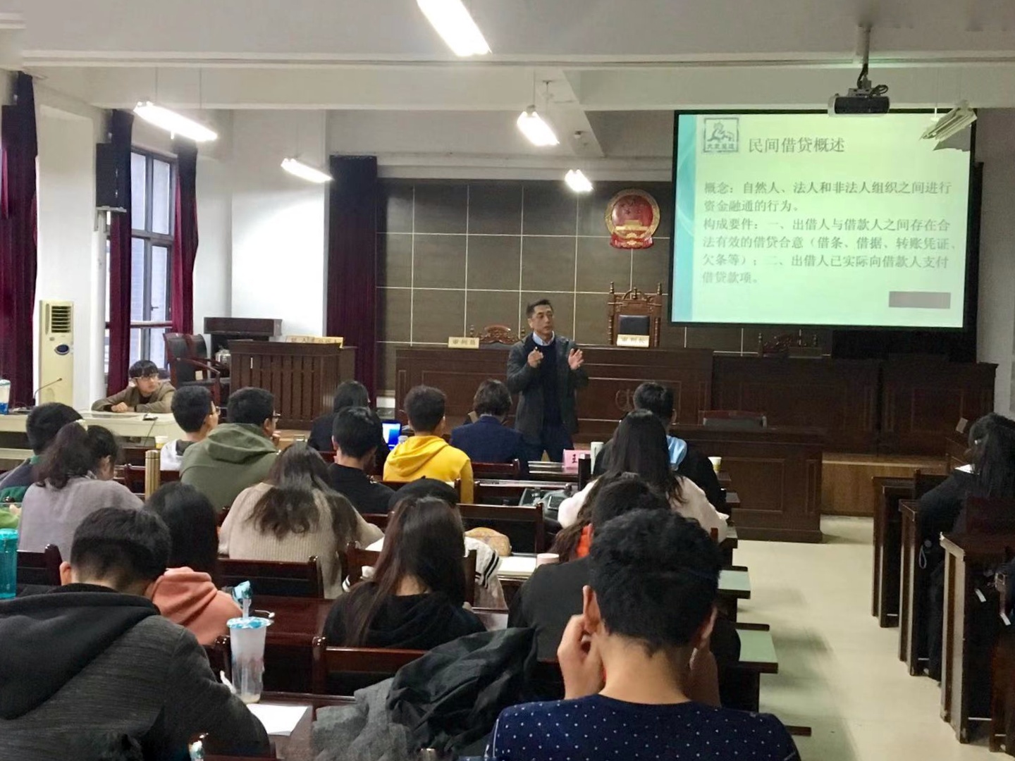 11月17日下午,“知秋杯”第一届爱体育平台法治论坛系列活动——“以案说法”在模拟法庭举办。安徽大友昱达律师事务所执行主任杨根宝作“民间借贷纠纷实例分析”主题报告。安徽大友昱达律师事务所律师王苏敏、安娟、黄娜、潘亮等受邀出席。活动由人文学院院长助理骆绪刚主持。