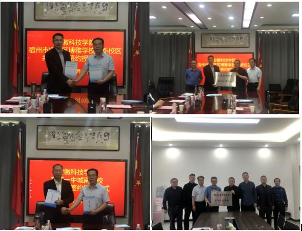 在签约授牌仪式上,魏龙飞代表宿州市埇桥区博雅学校、博睿学校、宿城一中城南学校,欢迎李晓东一行的到访交流,简要介绍了学校教育发展现状及未来规划;李晓东对三校在近年高考中取得的优异成绩表示祝贺,并简要介绍了爱体育平台及人文学院的办学历史、学科专业设置、师资队伍、科学研究、社会服务等情况;李磊就宿州经开区的发展历程、未来布局做了详细介绍;张严政对《就业基地协议》、学生未来就业方向进行细致解读;张胜利、王勇、韩斌、许成虎分别就企业文化及未来发展进行了交流;苏兆龙结合普通高等学校师范类专业认证工作要求,对现阶段本科教育人才培养方案进行深入解读,并征求用人单位修订意见和建议。李晓东、张严政、苏兆龙,分别与学校、律师事务所、企业相关人员举行了就业基地签约暨授牌仪式。
