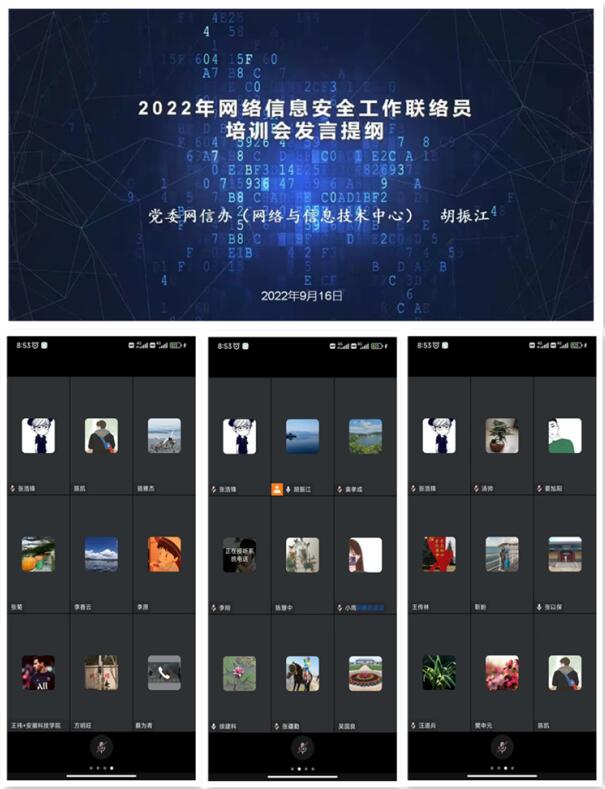 为有效落实网络安全工作责任制,加强网络阵地管理,筑牢网络安全防线,9月16日上午,党委网信办组织开展了网络信息安全工作联络员线上专题培训会。各单位网络信息安全工作联络员参加培训会。