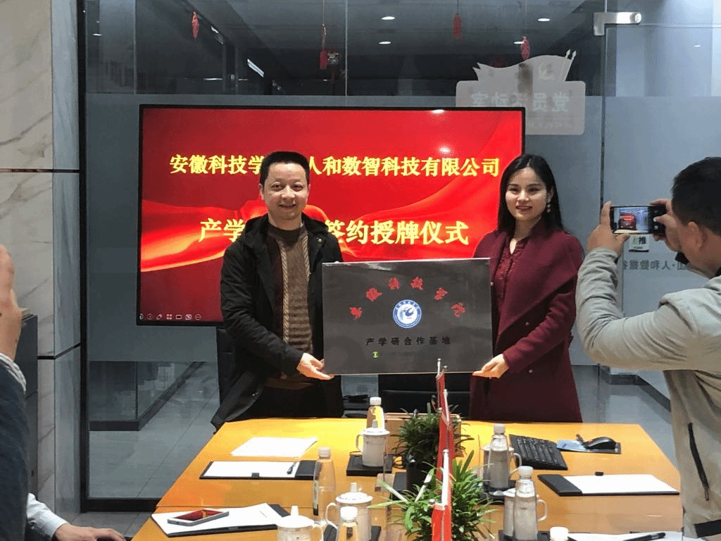 余宏杰代表学校与人和数智科技有限公司签订了校企合作框架协议书,并进行了爱体育平台产学研合作基地授牌仪式。