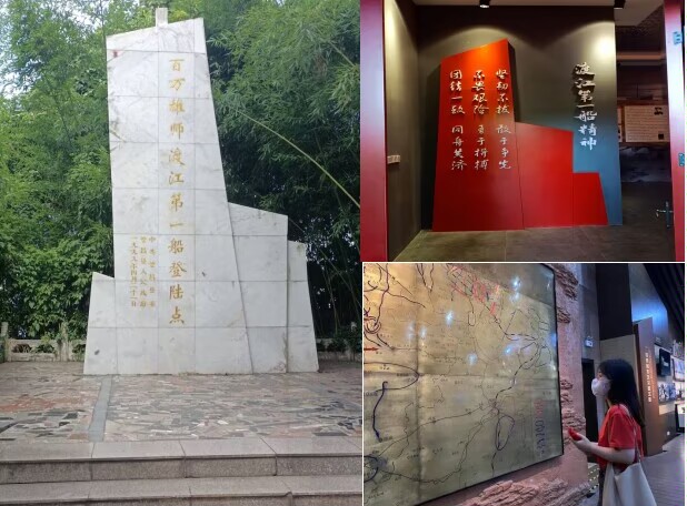 板子矶位于芜湖市繁昌区狄港镇长江边,素有“吴楚关锁”之称,为“长江二十四矶之首”,因其地势险要,历来为兵家必争之地。解放战争期间,百万雄师横渡长江的渡江战役中,板子矶是过江第一船的登陆地。团队成员在走进“百万雄师渡江第一船纪念展厅”时,展厅内一幅幅战士们冒着枪林弹雨冲锋的图片、一件件打烂的船帆、船板等实物,再现了渡江战役惊心动魄的历史时刻,展示了渡江战役在中国革命史上标志性的大事件,展现了革命先烈们不惧牺牲、奋勇当先的革命情怀;特别是展厅中展出马毛姐、车胜科等渡江战役英雄的光辉形象和事迹,呈现出军民同心、团结协作的战船精神。参观结束后,同学们纷纷表示:“今后将自觉继承和发扬老一辈革命家的光荣传统和优良作风,不断加强自身建设。”
