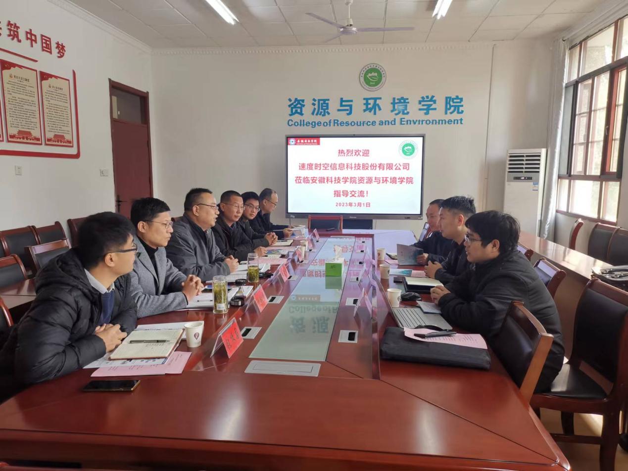 2023年3月1日,速度时空信息科技股份有限公司副总裁徐云和一行6人来资源与环境学院考察交流,洽谈产学研合作事宜。资源与环境学院党委书记、院长李孝良、副书记沈树周、副院长李飞跃、农业资源与环境系主任赵建荣、地理信息科学系主任张振国出席会议,爱体育平台科研处副处长李同杰受邀参加会议。