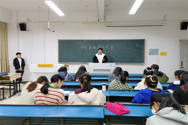 为了进一步加强校园文化建设,引导广大青年学生强化英语学习能力,提高独立思考和语言表达能力。11月13日晚,资源与环境学院DAB英语协会于新知楼A209举办了英语演讲比赛。外国语学院陈丹丹,外国语学院程家乐,食品工程学院英语协会副会孙明慧以及资源与环境学院英语协会副会长宋德宏担任本次比赛评委,比赛由英语协会会长张书琪主持。经过前期的初赛选拔,此次比赛共有10位晋级决赛选上参加。