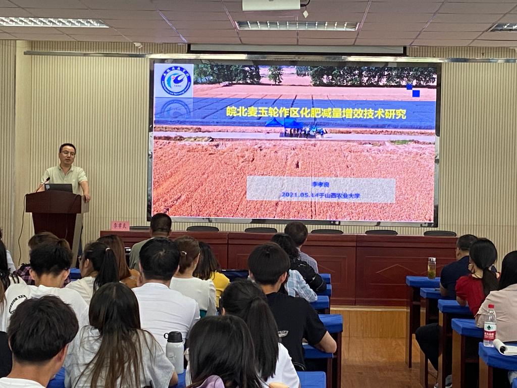 14日下午,李孝良一行与山西农业大学资源与环境学院进行了工作交流,党委书记陈斌、副院长刘奋武、副院长程永钢、副院长李廷亮热情接待,双方就就一流专业建设、人才培养、社会服务、与地方农科院的合作等方面进行了深入交流,并参观了学院实验教学中心、学科平台。应刘奋武邀请,李孝良和邹长明分别作了题为《皖北麦玉轮作区化肥减量增效技术研究》、《绿肥抗逆给我们的启示》的学术报告,同山西农业大学资源与环境学院师生就化肥减量增效技术、绿肥抗逆品种选育等进行了深入交流。