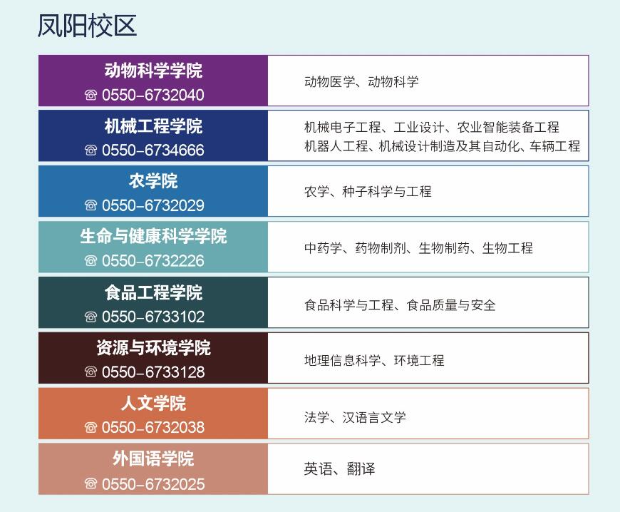 0550-6732041、6732178、6733934(凤阳校区)