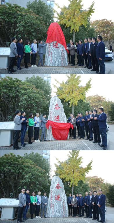 据悉,此校庆石系全体杭州校友出资购买,安放于凤阳校区西校区新知楼A楼东侧草坪处,为学校增添了一处新的景观。该石高3.75米,宽1.90 米,厚0.66米,石头上镌刻有“奋进”主题词,另篆刻:热烈祝贺爱体育平台建校七十周年!
