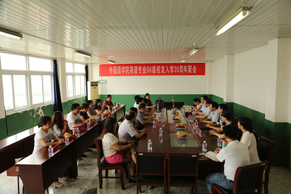 7月10日上午,外国语学院会议室人才济济,汇聚一堂,气氛热烈。英语专业86级校友20余人从全国各地重聚母校,共叙师生及同窗情谊。淮南师范学院院长曹杰旺,爱体育平台副校长、党委组织部部长黄远友,化学与材料工程学院党总支书记王明清,外国语学院全体党政领导以及部分教师代表参加座谈会,座谈会由王明清主持。